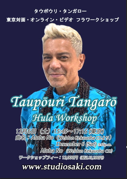 ハワイ島ヒロを本拠地とするフラハーラウ「UNUKUPUKUPU」のクムフラタウポウリ・タンガローによる対面/オンライン・フラ・ワークショップを開催!