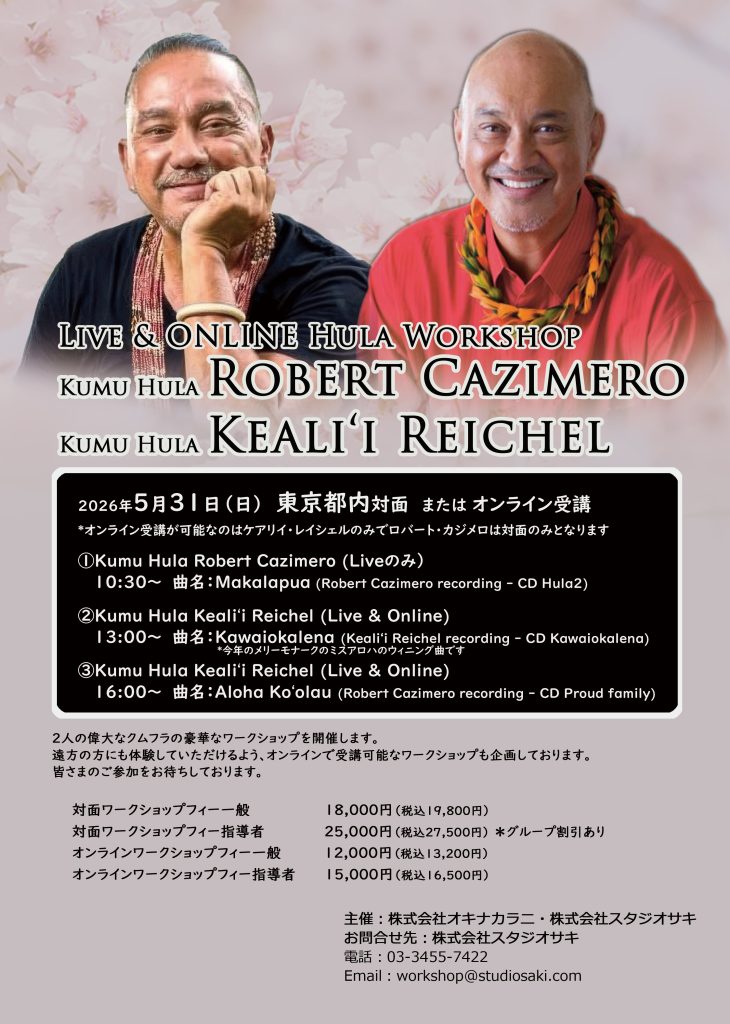 Kumu Hula Robert Cazimero , Kumu Hula Kealiʻi Reichelによるフラワークショップの開催が決定いたしました!